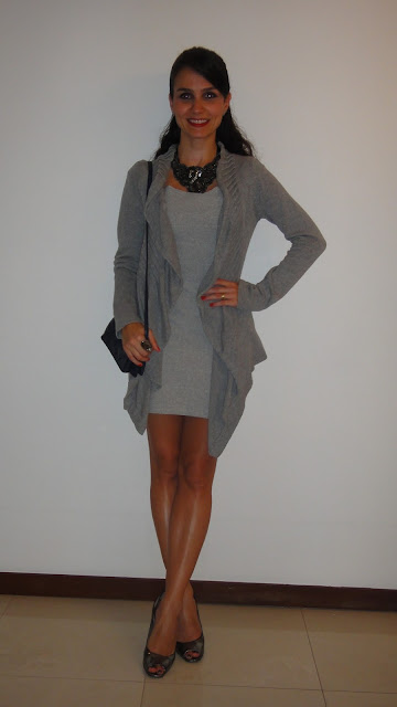 Aqui uma fotinha pra mostrar como realmente NÃO uso e NEM sei usar fotoshop.. Deem uma olhada nos olhinhos de loba da garota..rs. Mas, enfim, essa fotinha é mesmo para mostrar que o ar condicionado dos restaurantes já não mais acaba com as minhas noites. Esse agasalho, também cinza, meeeeeeeega quentinho e gostoso é da Zara.